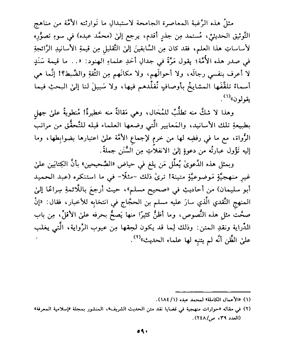 (¬٢) في مقاله «حوارات منهجية في قضايا نقد متن الحديث الشريف»، المنشور بمجلة «إسلامية المعرفة» (العدد ٣٩، ص/٢٤٨).