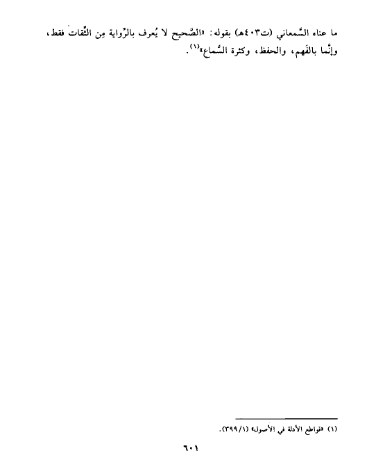 ما عناه السَّمعاني (ت ٤٠٣ هـ) بقوله: «الصَّحيح لا يُعرف بالرِّواية مِن الثِّقات فقط، وإنَّما بالفَهم، والحفظ، وكثرة السَّماع» (¬١).