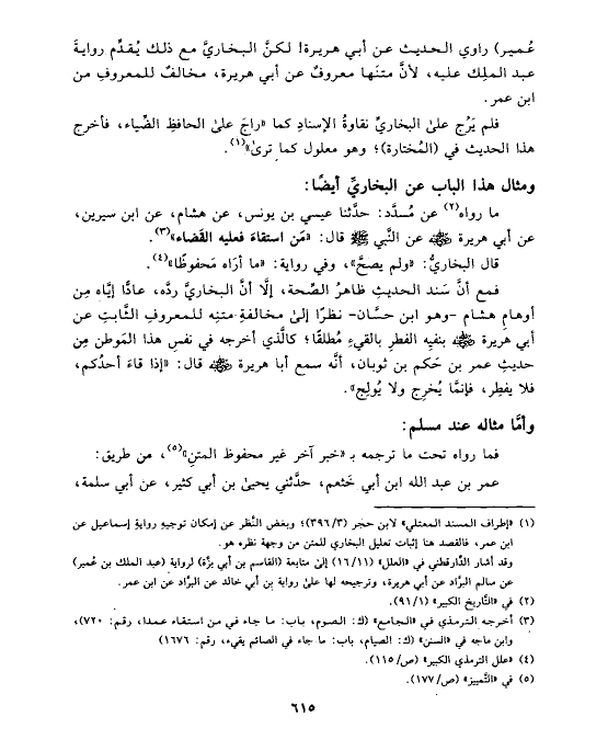 عُمير) راوي الحديث عن أبي هريرة! لكنَّ البخاريَّ مع ذلك يُقدِّم روايةَ عبد الملِك عليه، لأنَّ متنَها معروفٌ عن أبي هريرة، مخالفٌ للمعروفِ من ابن عمر.