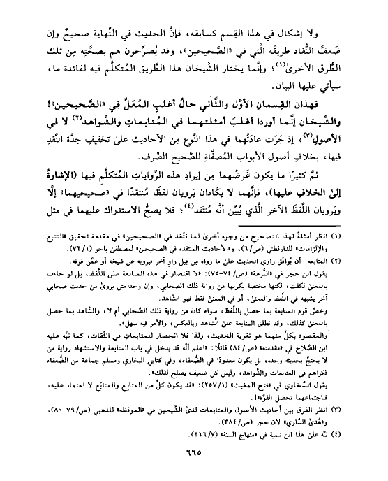 فهذان القِسمانِ الأوَّل والثَّاني حالُ أغلبِ المُعَلِّ في «الصَّحيحين»! والشَّيخان إنَّما أوردا أغلبَ أمثلتهما في المُتابعاتِ والشَّواهد (¬٢) لا في الأصولِ (¬٣)، إذ جَرَت عادَتُهما في هذا النَّوع مِن الأحاديث على تخفيفِ حِدَّة النَّقدِ فيها، بخلافِ أصول الأبواب المُصفَّاةِ للصَّحيح الصِّرف.