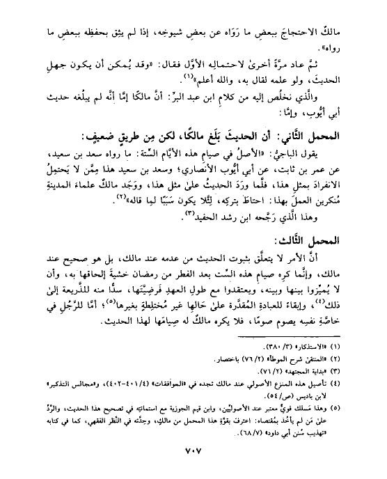 (¬٥) وهذا مَسلك قويٌّ معتبر عند الأصوليِّين، وابن قيم الجوزية مع استماتتِه في تصحيح هذا الحديث، والرَّدِّ على مَن لم يأخُذ بمُقتصاه: اعترفَ بقوَّةِ هذا المحمل من مالكٍ، وحِدَّته في النَّظر الفقهي، كما في كتابه «تهذيب سُنن أبي داود» (٧/ ٦٨).
