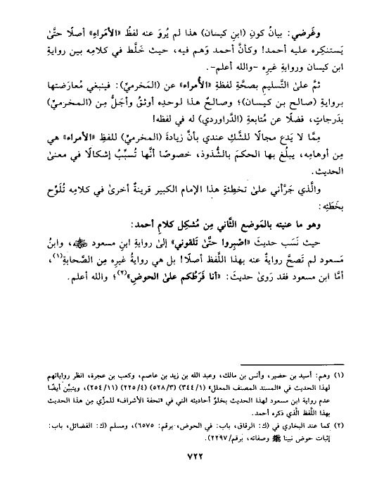 وغَرضي: بيانُ كونِ (ابنِ كيسان) هذا لم يُروَ عنه لفظُ «الأمَراءِ» أصلًا حتَّى يَستنكِره عليه أحمد! وكأنَّ أحمد وَهم فيه، حيث خَلَّط في كلامِه بين روايةِ ابن كيسان وروايةِ غيرِه -والله أعلم-.