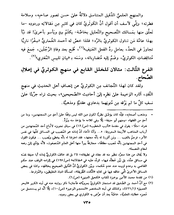 والمنهج العلميُّ الدَّقيق المتناسق دلالةٌ على حسن تصور صاحبِه، وسلامة فطرته؛ وإنِّي لآسف أن أقول أنَّ الكَوثَريَّ كان في كثيرٍ مِن مَقالاتِه وردودِه -ما تَعلَّق منها بمَسالك التَّصحيحِ والتَّعليل بخاصَّة- يكلَمُ بيدٍ ويَأسو بأخرى! قد نبَّأ بهذا عامَّة مَن تناول الكوثريَّ بالرَّد؛ فلذا خصَّ له أحمد الغُماريُّ «سِفْرًا نارِيًّا تجاوزَ في الحدِّ، بعاملِ ردِّ الفعلِ العَنيفِ» (¬١)، طُبع بعد وفاةِ الرَّجُلَين، جَمعَ فيه مُتناقِضاتِ الكوثريِّ، وضَمَّ إليه مُتضارِباته، وسَمَه بـ «بيانِ تلبيسِ المُفتري» (¬٢).