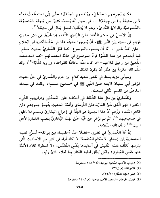 وللغُماريِّ مِن مثل هذا الشَّطَط في أحكامه على المُحدِّثين ودواوينِهم الشَّيء الكثير؛ فهو الَّذي شَنَّ الغارَة على التِّرمذي وأئمَّة الحديثِ بتُهمةِ جمودِهم على ظاهرِ السَّند، وزَعم أنَّ هذا الجمودَ هو العِلَّةُ في إخراجِ البخاريِّ ومسلم للأباطيلِ في صحيحيهما (¬٣)، ثمَّ لم يَرْعَوِ عن غَيِّه حتَّى بهَتَ البُخاريَّ بنصبِ العَداوةِ لأهلِ البيت! (¬٤) نسأل الله السَّلامة.