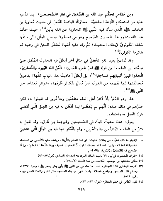 (¬١) حيث حكَمَ عبد الله بشذوذِ هذا الحديث الصَّحيح وهو في «مسلم»! وبنفسِ العِلَل التَّي ساقَها سَلَفه الكَوثريُّ لإبطال الحديث؛ ثمَّ زاد عليه أشياءَ تَنقضُ المتنَ في زعمِه لم يذكرها الكوثريُّ