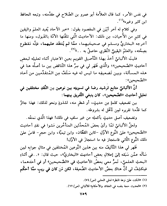 (¬٢) «الحديث حجة بنفسه في العقائد والأحكام» للألباني (ص/٦٢).