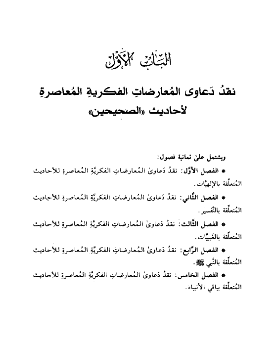 * الفصل الأوَّل: نقدُ دَعاوى المُعارضاتِ الفكريَّةِ المُعاصرةِ للأحاديث المُتعلِّقة بالإلهيَّات.