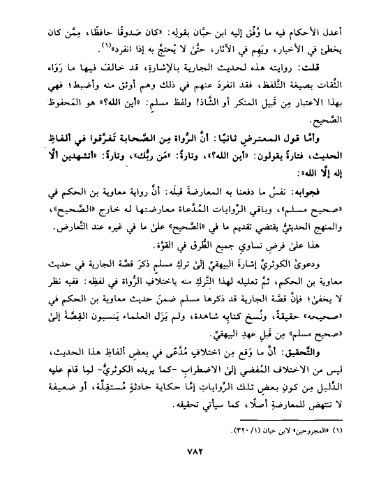ودعوى الكوثريِّ إشارةَ البيهقيِّ إلى تركِ مسلمٍ ذكرَ قصَّة الجارية في حديث معاوية بن الحكم، ثمَّ تعليله لهذا التَّركِ منه باختلافِ الرُّواة في لفظِه: ففيه نظر لا يخفى؛ فإنَّ قصَّة الجارية قد ذكرها مسلم ضمنَ حديث معاوية بن الحكم في «صحيحه» حقيقةً، ونُسخ كتابِه شاهدة، ولم يَزَل العلماء يَنسبون القِصَّةَ إلى «صحيح مسلم» مِن قَبلِ عهدِ البيهقيِّ.