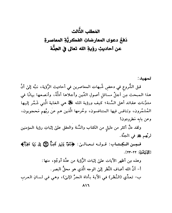 قبل الشُّروعِ في دحضِ شُبهات المعاصرين في أحاديث الرُّؤية، ننبِّه إلى أنَّ هذا المبحث مِن أجلِّ مسائلِ أصولِ الدِّين وأجلاها أدلَّةً، وأنصعها بيانًا في مدوَّنات عقائد أهل السُّنة؛ كيف ورؤية الله جل جلاله هي الغاية الَّتي شَمَّر إليها المُشمِّرون، وتنافس فيها المتنافسون، وحُرمها الَّذين هم عن ربِّهم مَحجوبون، وعن بابِه مَطرودون!