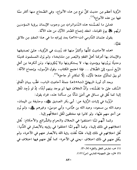 الرُّؤية أعظم مِن حديث كلِّ نوعٍ مِن هذه الأنواع، وفي الصِّحاح منها أكثر ممَّا فيها مِن هذه الأنواع» (¬١).
