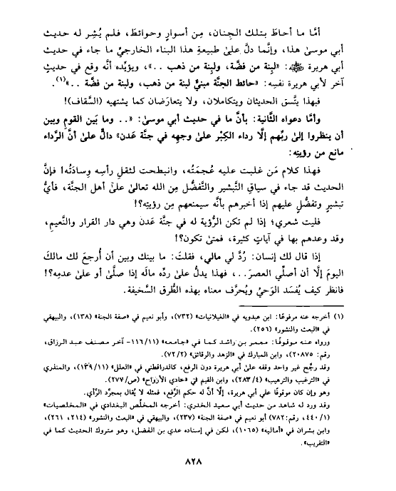 وأمَّا دعواه الثَّانية: بأنَّ ما في حديث أبي موسى: « .. وما بَين القومِ وبين أن ينظروا إلى ربِّهم إلَّا رداء الكِبْر على وجهِه في جنَّة عَدن» دالٌّ على أنَّ الرَّداء مانع من رؤيتِه: