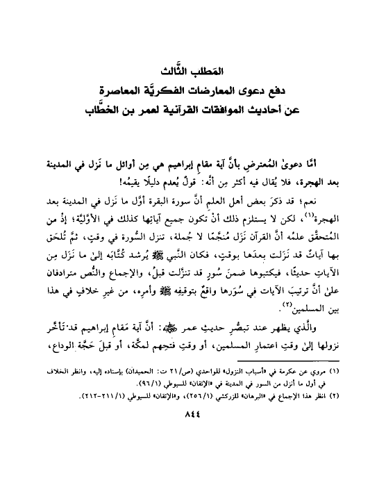 المَطلب الثَّالث دفع دعوى المعارضات الفكريَّة المعاصرة عن أحاديث الموافقات القرآنية لعمر بن الخطَّاب