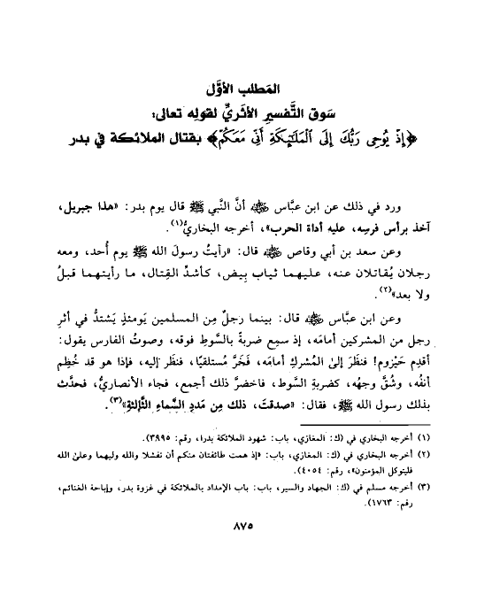 (¬٣) أخرجه مسلم في (ك: الجهاد والسير، باب: باب الإمداد بالملائكة في غزوة بدر، وإباحة الغنائم، رقم: ١٧٦٣).