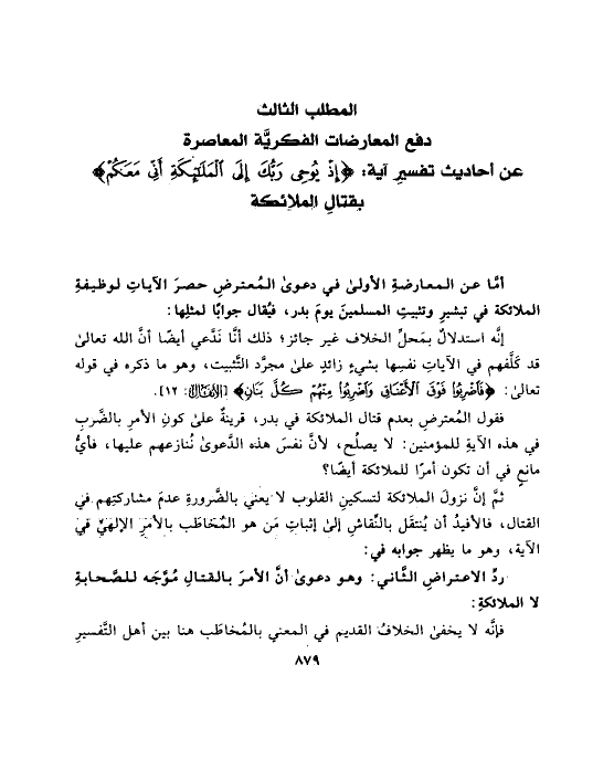 ردِّ الاعتراضِ الثَّاني: وهو دعوى أنَّ الأمرَ بالقتالِ مُوَّجَه للصَّحابةِ لا الملائكةِ: