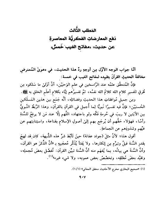المَطلب الثَّالث دَفع المعارضاتِ الفكريَّة المعاصرةِ عن حديث: «مفاتح الغيب خَمسٌ»