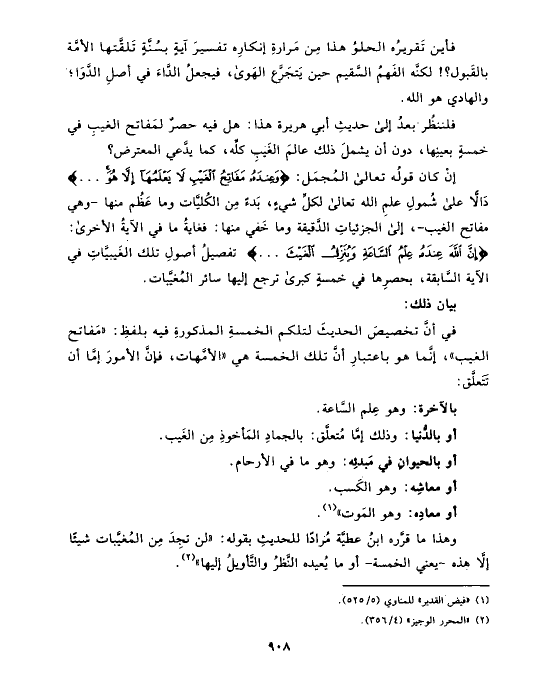 وهذا ما قرَّره ابنُ عطيَّة مُرادًا للحديثِ بقوله: «لن تجِدَ مِن المُغيَّبات شيئًا إلَّا هذه -يعني الخمسة- أو ما يُعيده النَّظرُ والتَّأويلُ إليها» (¬٢).