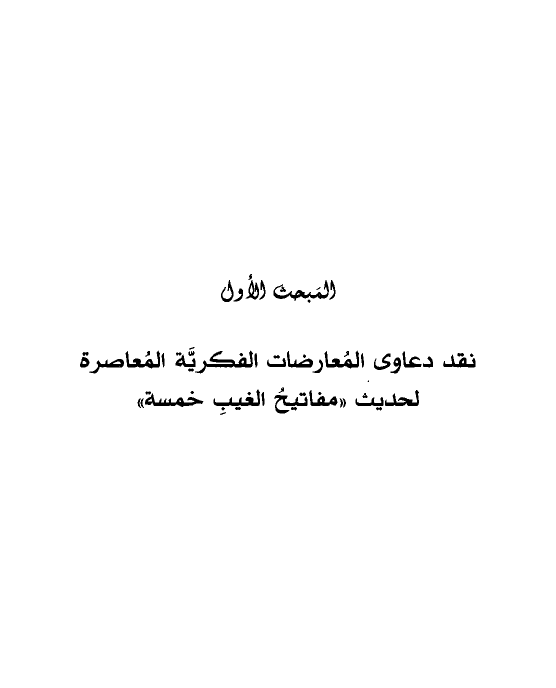 المَبحث الأوَّل نقد دعاوى المُعارضات الفكريَّة المُعاصرة لحديث «مفاتيحُ الغيبِ خمسة»