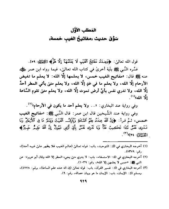 المَطلب الأوَّل سَوْق حديث «مفاتيحُ الغيبِ خمسة»
