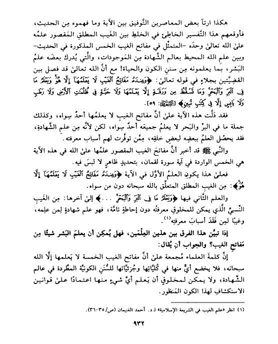 (¬١) انظر «علم الغيب في الشريعة الإسلامية» لـ د. أحمد الغنيمان (ص/٣٥ - ٣٦).