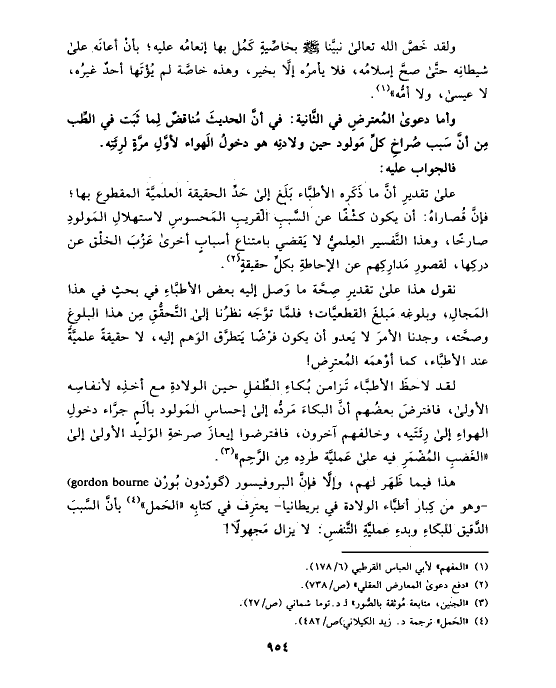 على تقديرِ أنَّ ما ذَكَره الأطبَّاء بَلَغ إلى حَدِّ الحقيقة العلميَّة المقطوع بها؛ فإنَّ قُصاراهُ: أن يكون كشْفًا عن السَّببِ القريبِ المَحسوسِ لاستهلالِ المَولودِ صارخًا، وهذا التَّفسير العِلميُّ لا يَقضي بامتناعِ أسبابٍ أخرى عَزُبَ الخلْق عن دركِها، لقصورِ مَدارِكِهم عن الإحاطةِ بكلِّ حقيقةٍ (¬٢).