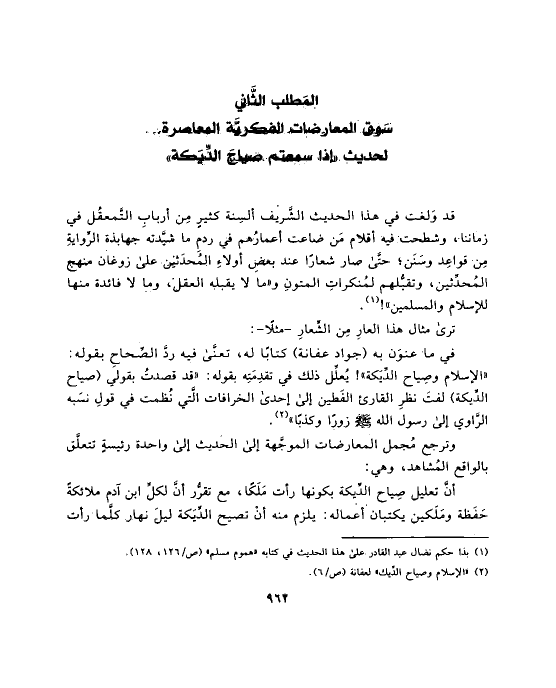 المَطلب الثَّاني سَوق المعارضات الفكريَّة المعاصرة لحديث «إذا سمعتم صياحَ الدِّيَكة»