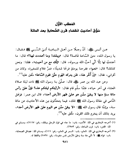 المَطلب الأوَّل سَوْق أحاديثِ انقضاءِ قرن الصَّحابةِ بعد المائة