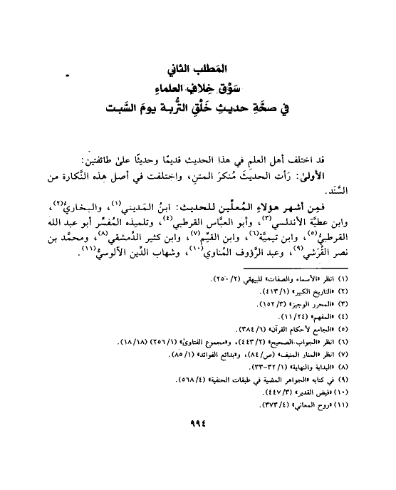 المَطلب الثاني سَوْق خِلافِ العلماءِ في صحَّةِ حديثِ خَلْقِ التُّربة يومَ السَّبت