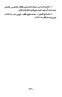 6- دفاع عن السنة ورد شبهات المستشرقين والكتاب المعاصرين، للدكتور محمد محمد أبي شهبة, طبعة مجمع البحوث الإسلامية بالإزهر.