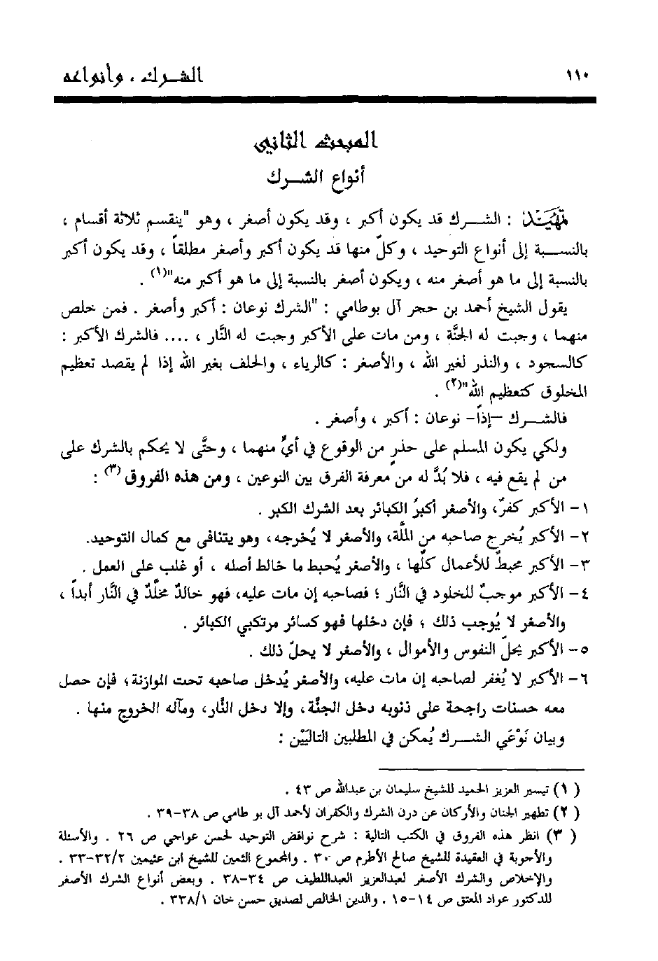 3 انظر هذه الفروق في الكتب التالية: شرح نواقض التوحيد لحسن عواجي ص26. والأسئلة والأجوبة في العقيدة للشيخ صالح الأطرم ص30. والمجموع الثمين للشيخ ابن عثيمين 2/ 23-33، والإخلاص والشرك الأصغر لعبد العزيز العبد اللطيف ص34-38، وبعض أنواع الشرك الأصغر للدكتور عواد المعتق ص14-15، والدين الخالص لصديق حسن خان 1/ 338.