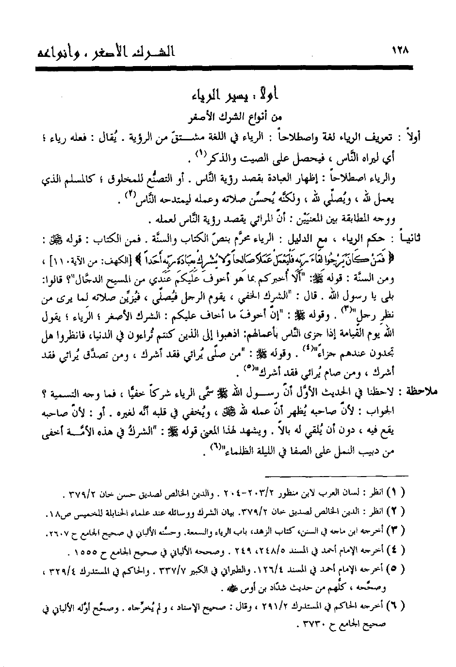 ويشهد لهذا المعنى قوله صلى الله عليه وسلم: "الشرك في هذه الملة أخفى من دبيب النمل على الصفا في الليلة الظلماء" 6.