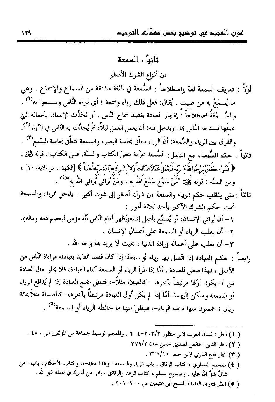ثانيا: السمعة من أنواع الشرك الأصغر: