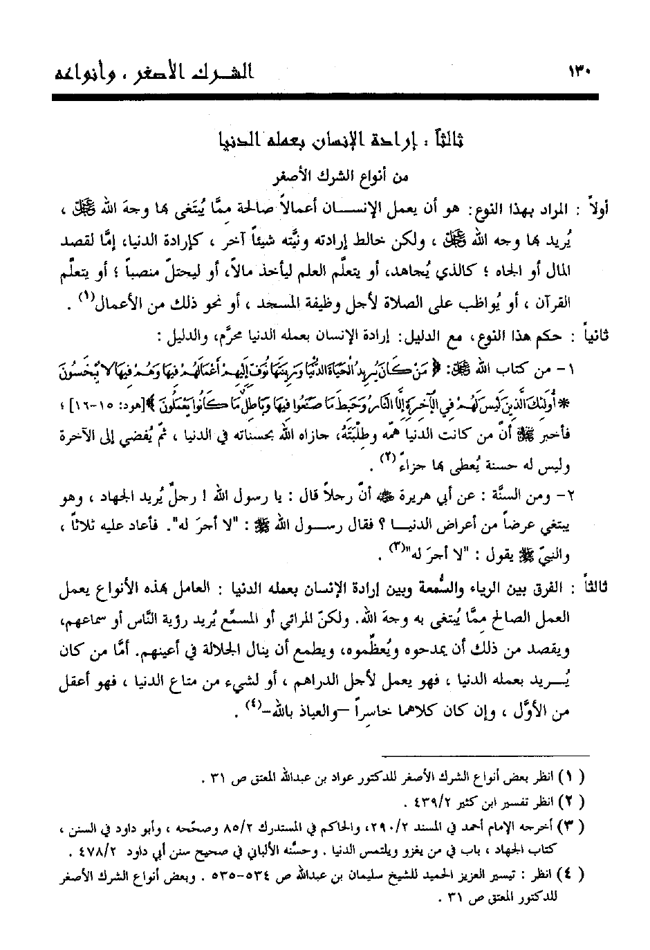 4 انظر: تيسير العزيز الحميد للشيخ سليمان بن عبد الله ص534-535. وبعض أنواع الشرك الأصغر للدكتور المعتق ص31.