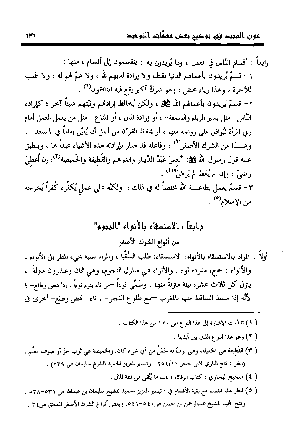 وفتح المجيد للشيخ عبد الرحمن بن حسن ص540-541. وبعض أنواع الشرك الأصغر للمعتق ص34.