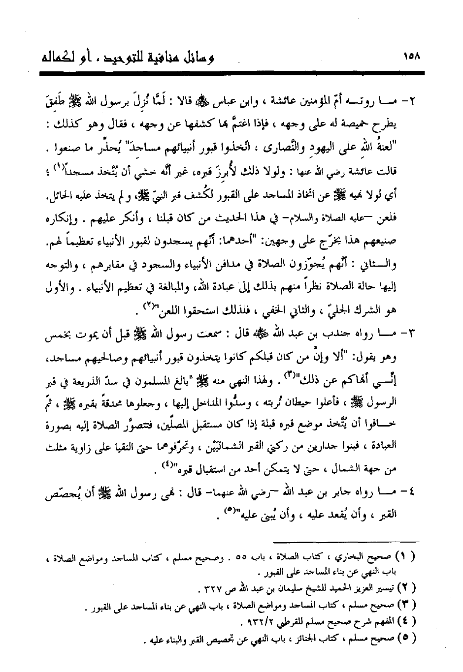 1 صحيح البخاري، كتاب الصلاة، باب 55. وصحيح مسلم، كتاب المساجد ومواضع الصلاة، باب النهي عن بناء المساجد على القبور.