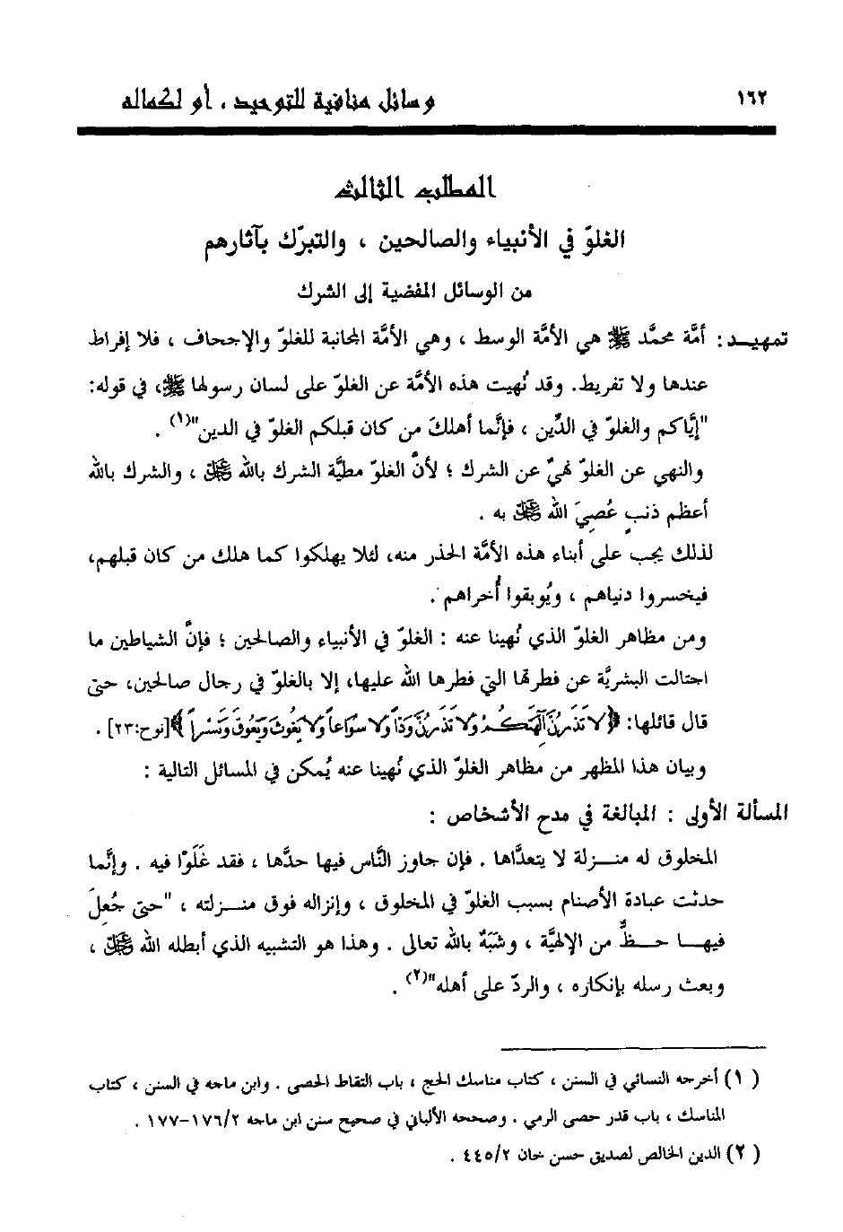 المطلب الثالث: الغلو في الأنبياء والصالحين، والتبرك بآثارهم من الوسائل المفضية إلى الشرك