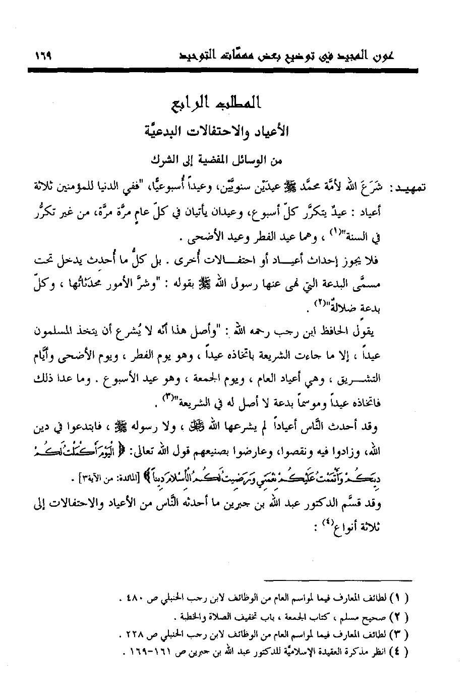 المطلب الرابع: الأعياد والاحتفالات البدعية من الوسائل المفضية إلى الشرك