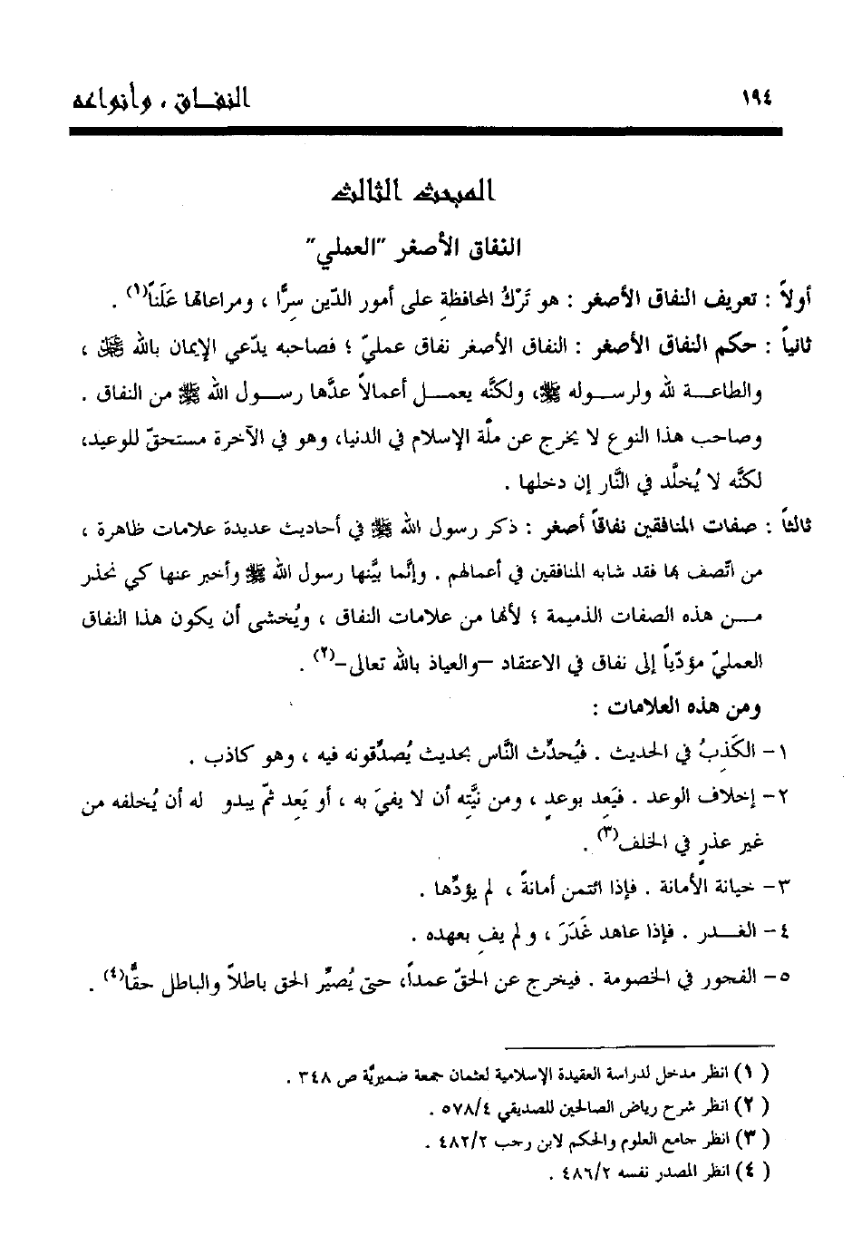 ثالثا: صفات المنافقين نفاقا أصغر: