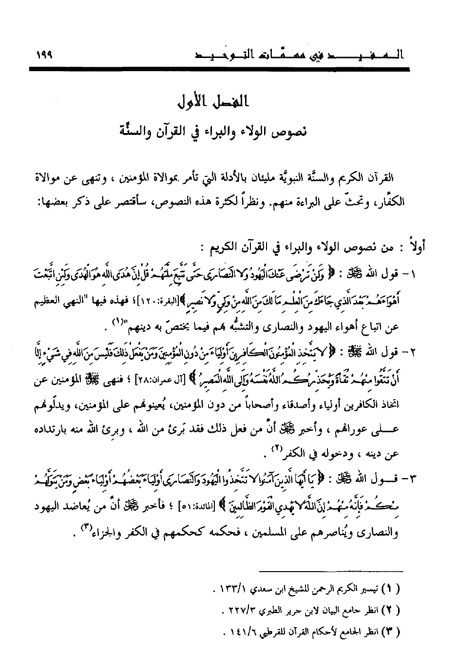 الفصل الأول: نصوص الولاء والبراء في القرآن والسنة