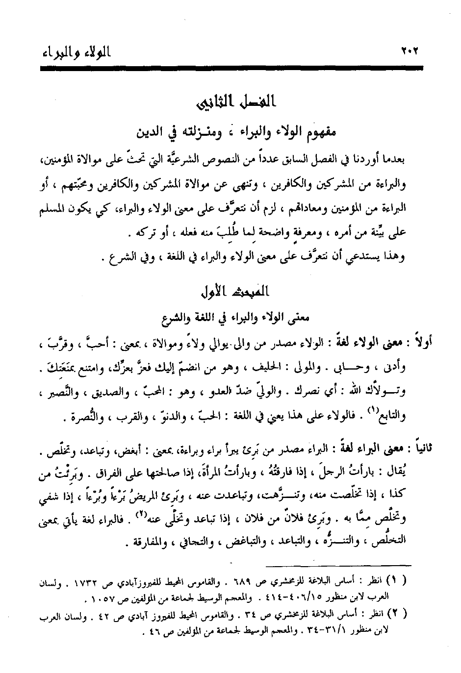 الفصل الثاني: مفهوم الولاء والبراء، ومنزلته في الدين