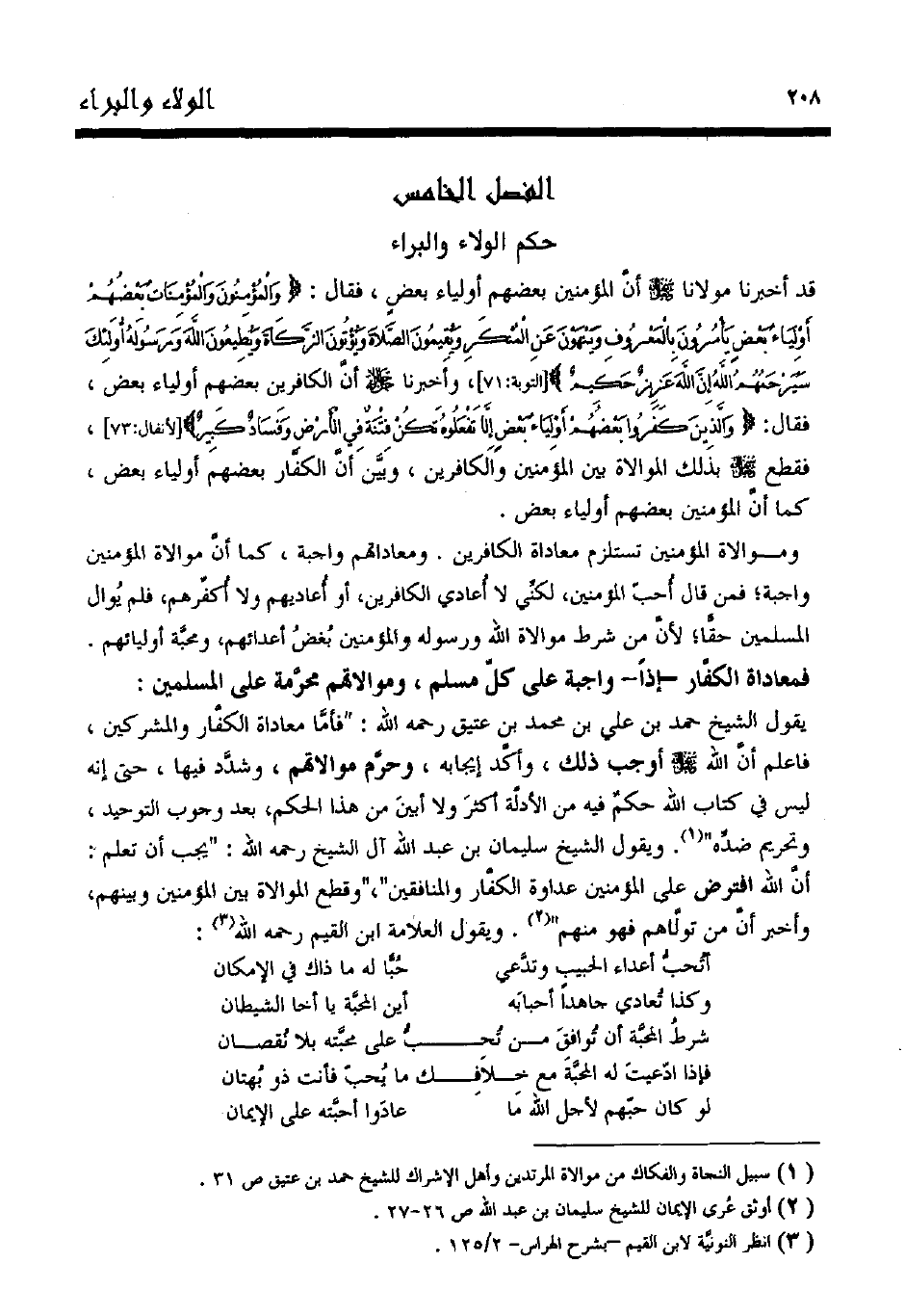 1 سبيل النجاة والفكاك من موالاة المرتدين وأهل الإشراك للشيخ حمد بن عتيق ص31.