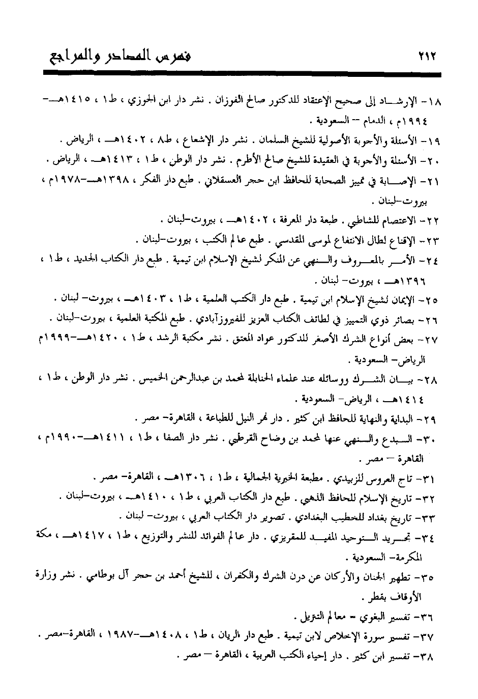 18- الإرشاد إلى صحيح الاعتقاد للدكتور صالح الفوزان. نشر دار ابن الجوزي، ط1، 1415هـ - 1944م، الدمام - السعودية.
