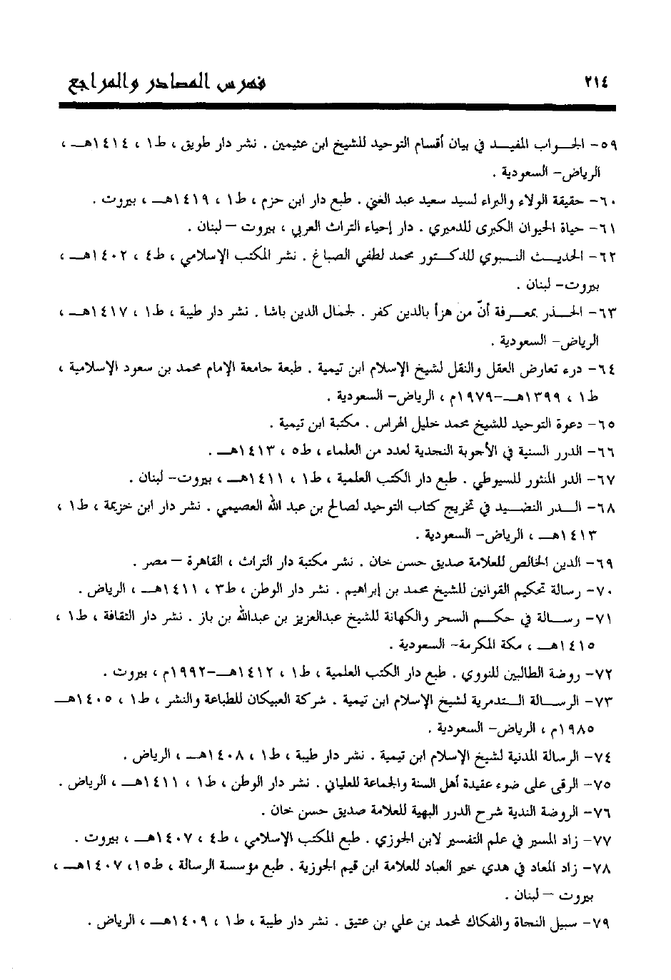73- الرسالة التدمرية لشيخ الإسلام ابن تيمية. شركة العبيكان للطباعة والنشر، ط1، 1405هـ - 1985، الرياض - السعودية.