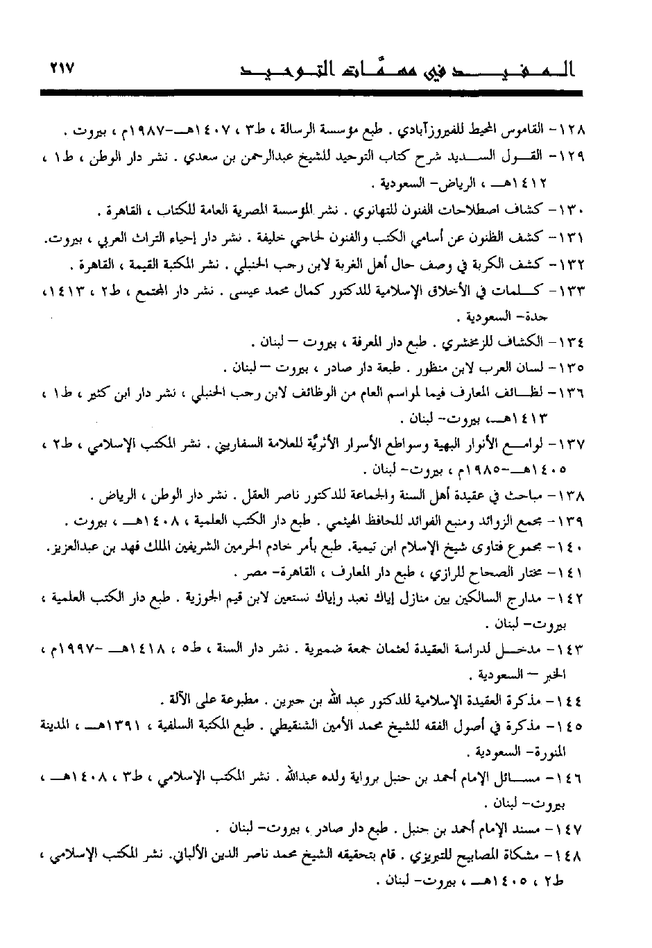 129- القول السديد شرح كتاب التوحيد للشيخ عبد الرحمن بن سعدي. نشر دار الوطن، ط1، 1412هـ، الرياض - السعودية.