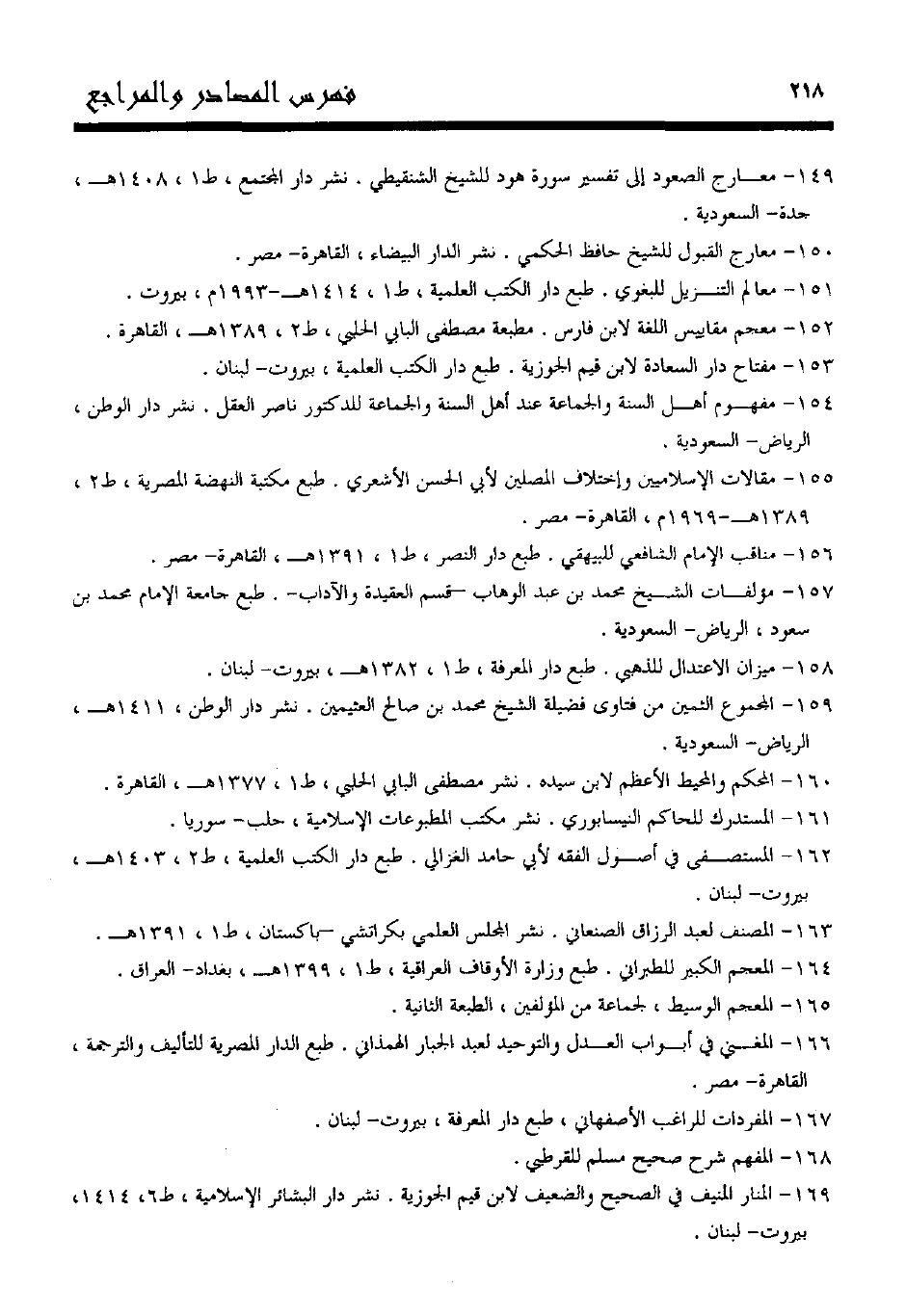 150- معارج القبول للشيخ حافظ الحكمي. نشر الدار البيضاء، القاهرة - مصر.