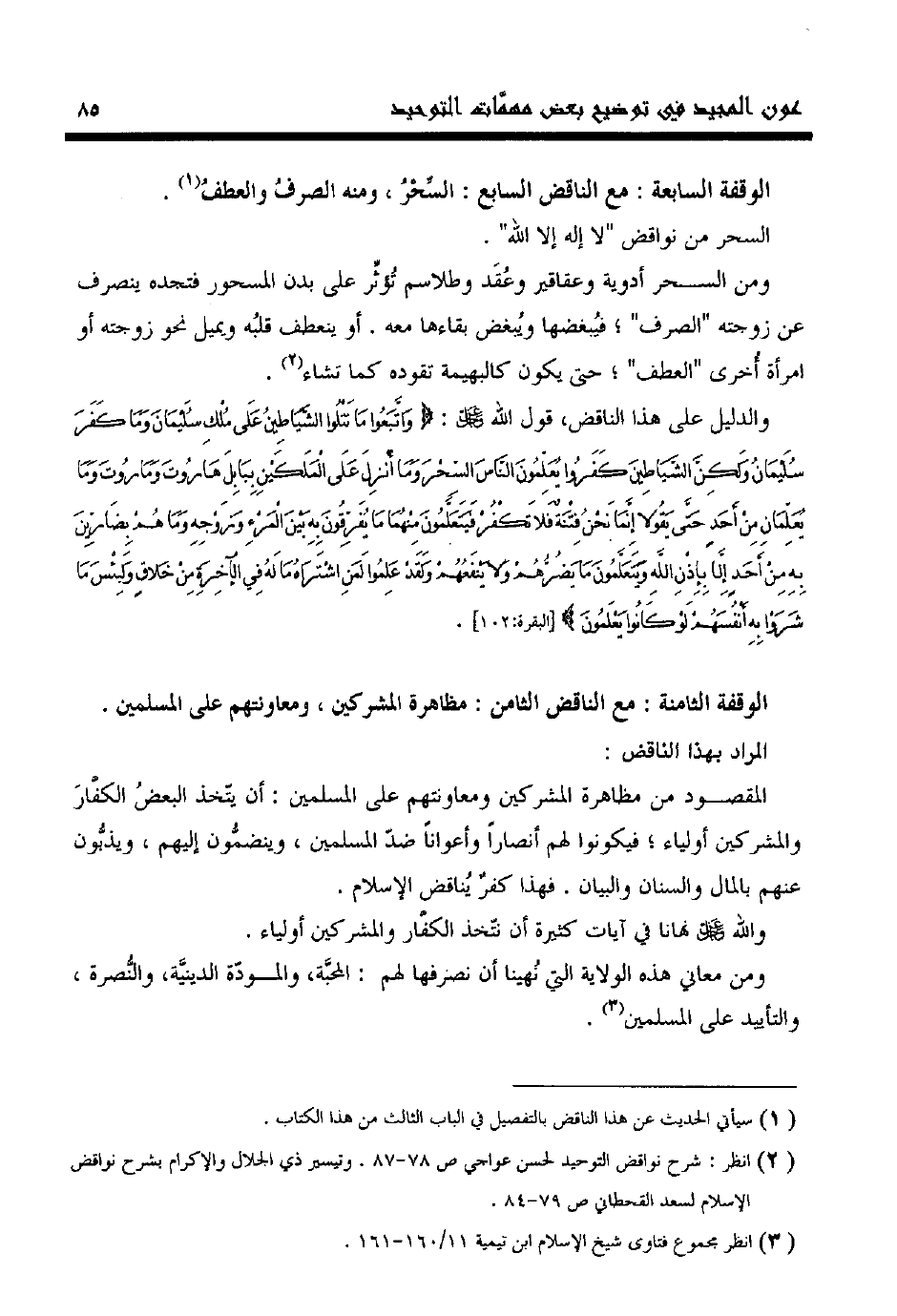 2 انظر: شرح نواقض التوحيد لحسن عاجي ص78-87، وتيسير ذي الجلال والإكرام بشرح نواقض الإسلام لسعد القحطاني ص79-84.
