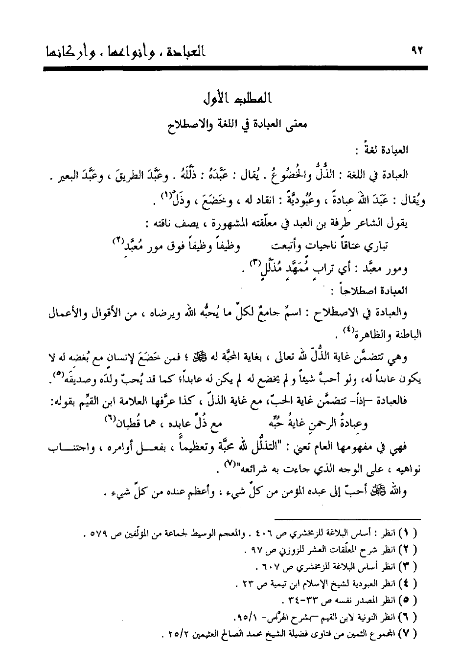 فهي في مفهومها العام تعني: "التذلل لله محبة وتعظيما، بفعل أوامره، واجتناب نواهيه، على الوجه الذي جاءت به شرائعه"7.