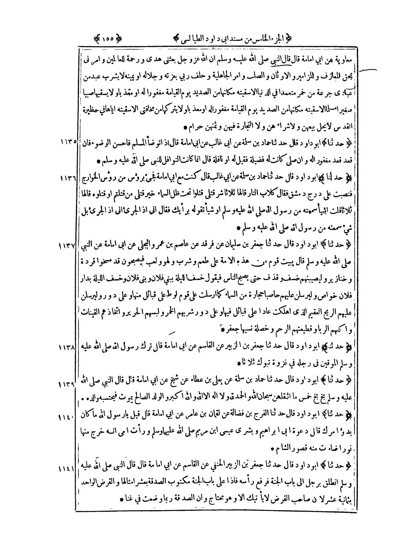 1136 - حدثنا أبو داود قال حدثنا حماد بن سلمة عن أبي غالب قال : كنت مع أبي امامة فجيء برؤس من رؤوس الخوارج فنصبت على درج دمشق فقال كلاب النار قالها ثلاثا شر قتلى قتلوا تحت ظل السماء خير قتلى من قتلتم أو قتلوه قالها ثلاثا قلت اشيأ سمعته من رسول الله صلى الله عليه و سلم أو شيئا تقوله برأيك فقال انى إذا الجرئ بل شيء سمعته من رسول الله صلى الله عليه و سلم