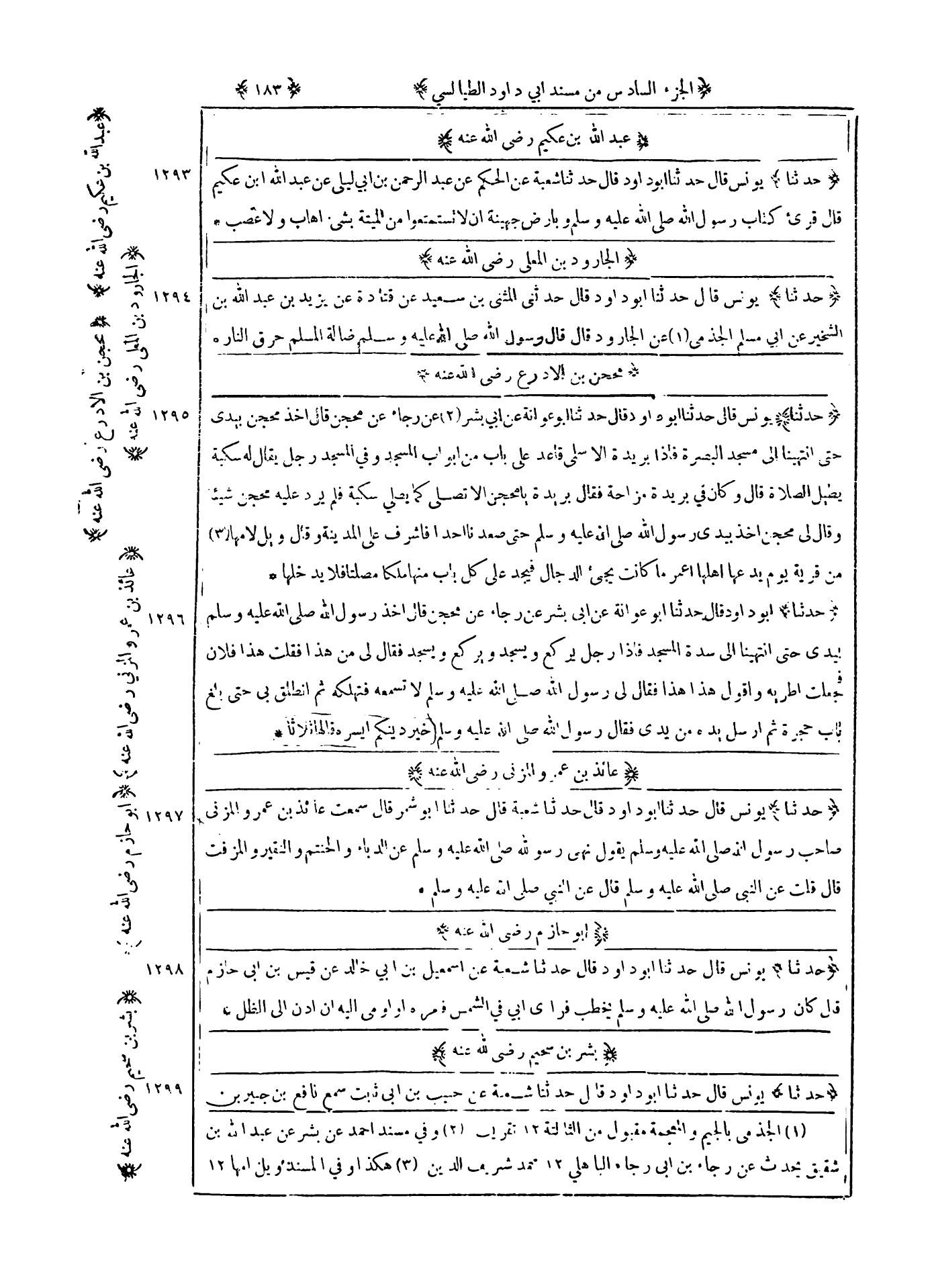 1294 - حدثنا يونس قال حدثنا أبو داود قال حدثنا المثنى بن سعيد عن قتادة عن يزيد بن عبد الله بن الشخير عن أبي مسلم الجذمى عن الجارود قال قال رسول الله صلى الله عليه و سلم : ضالة المسلم حرق النار