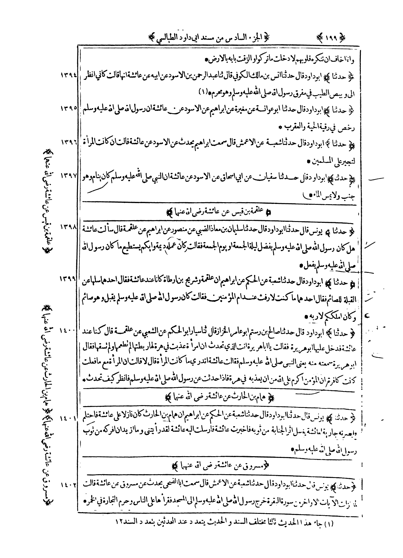 1396 - حدثنا أبو داود قال حدثنا شعبة عن الأعمش قال سمعت إبراهيم يحدث عن الأسود عن عائشة قالت : ان كانت المرأة لتجير على المسلمين