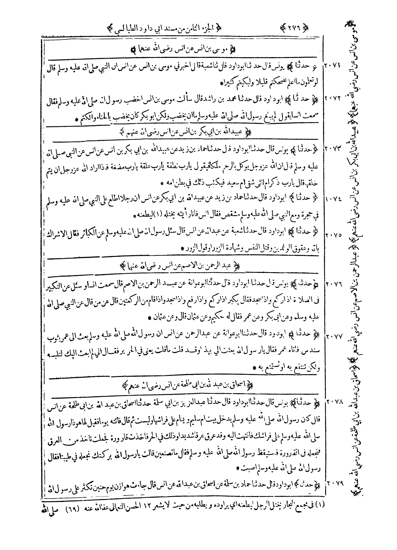 2076 - حدثنا يونس قال حدثنا أبو داود قال حدثنا أبو عوانة عن عبد الرحمن بن الأصم قال سمعت أنسا وسئل عن : التكبير في الصلاة إذا ركع وإذا سجد فقال يكبر إذا ركع وإذا رفع وإذا سجد وإذا قام من الركعتين قال عن من قال عن النبي صلى الله عليه و سلم وعن أبي بكر وعن عمر فقال له حكيم وعن عثمان قال وعن عثمان